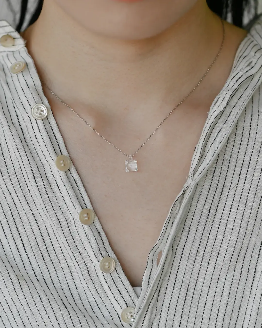 日本橋のショップにて購入しました。普段使いの小さめで揺れるピアスが欲しいです、と相談して、スタッフの方にご提案いただいたなかの一つがこちらの「ムーンライト」でした。小ぶりながらも主張のあるデザイン、スクエアのふっくらとしたシェイプに光を集めて輝く様子がとても綺麗で、オンオフ問わず毎日使える優秀なモチーフだと思います。ゴ ールドのチェーンを用いたリングのシリーズに同じデザインのものがあったので、そちらも追って購入しました。軽くてつけ心地も良いので、ガラスのアクセサリーが初めての方や、プレゼント用としてもおすすめできると思います。