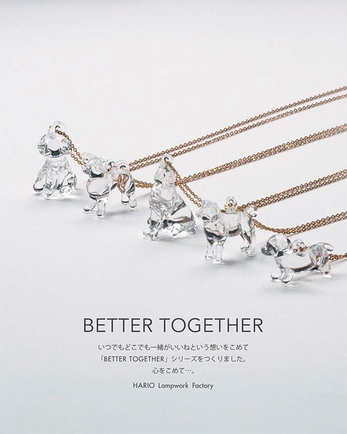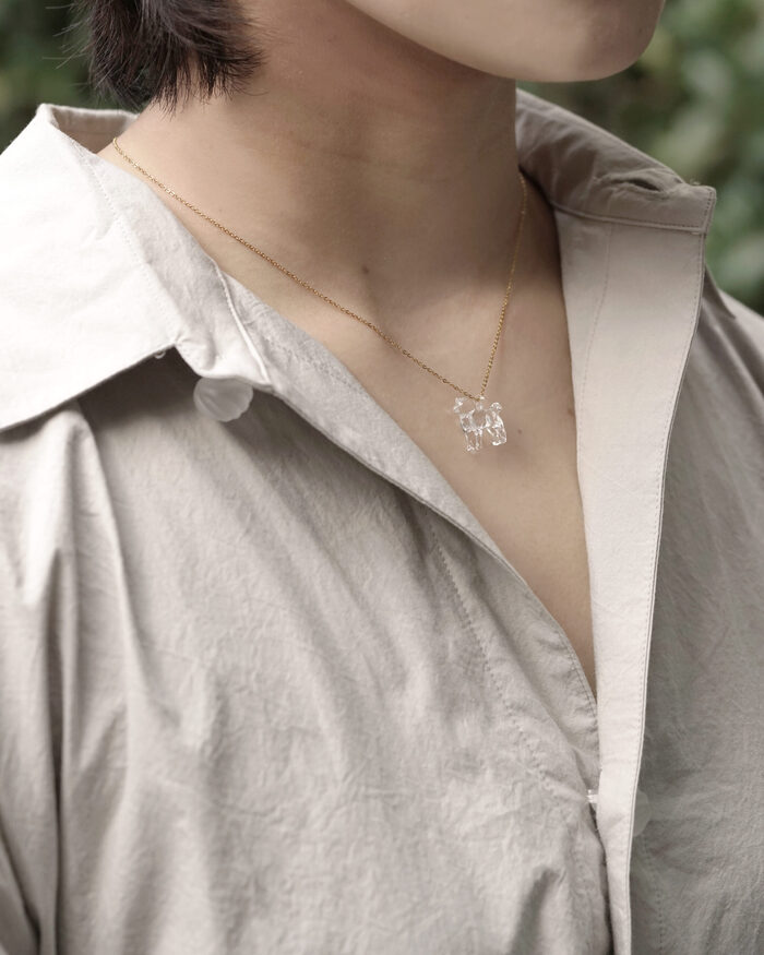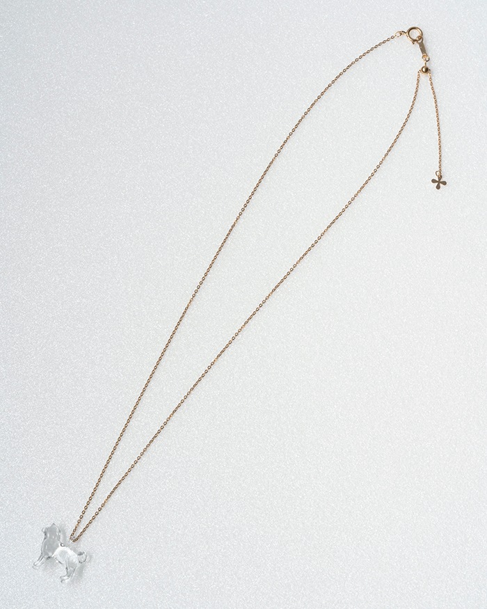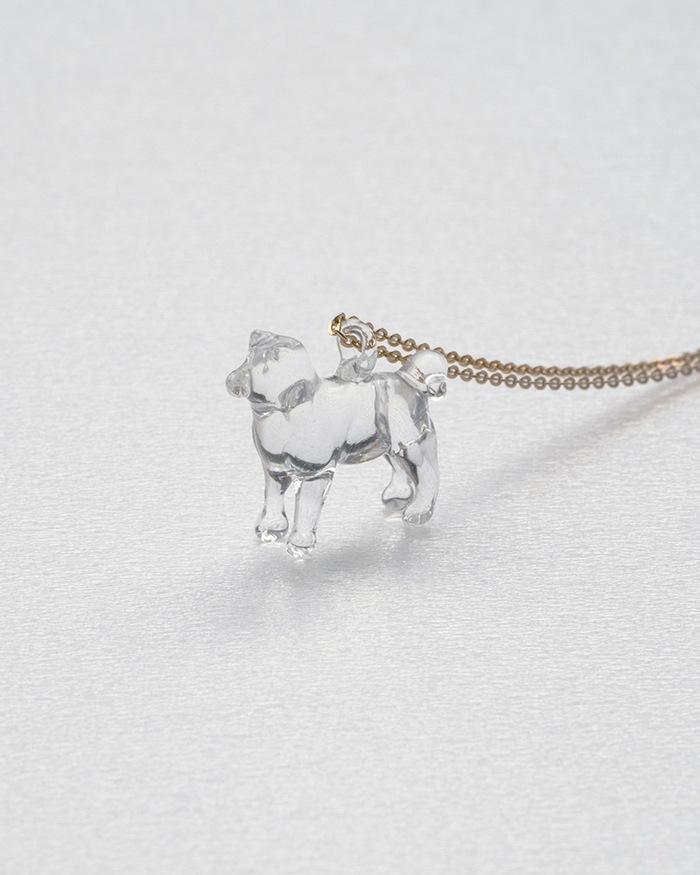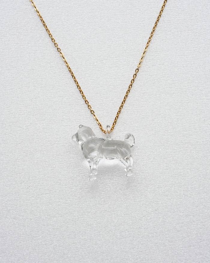胸元で光るクリアなガラスのシバイヌはいつもあなたのそばに。