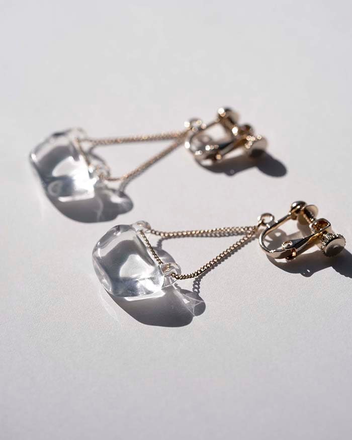 耳元で煌めく氷のピアスは、涼しげに夏を演出します。