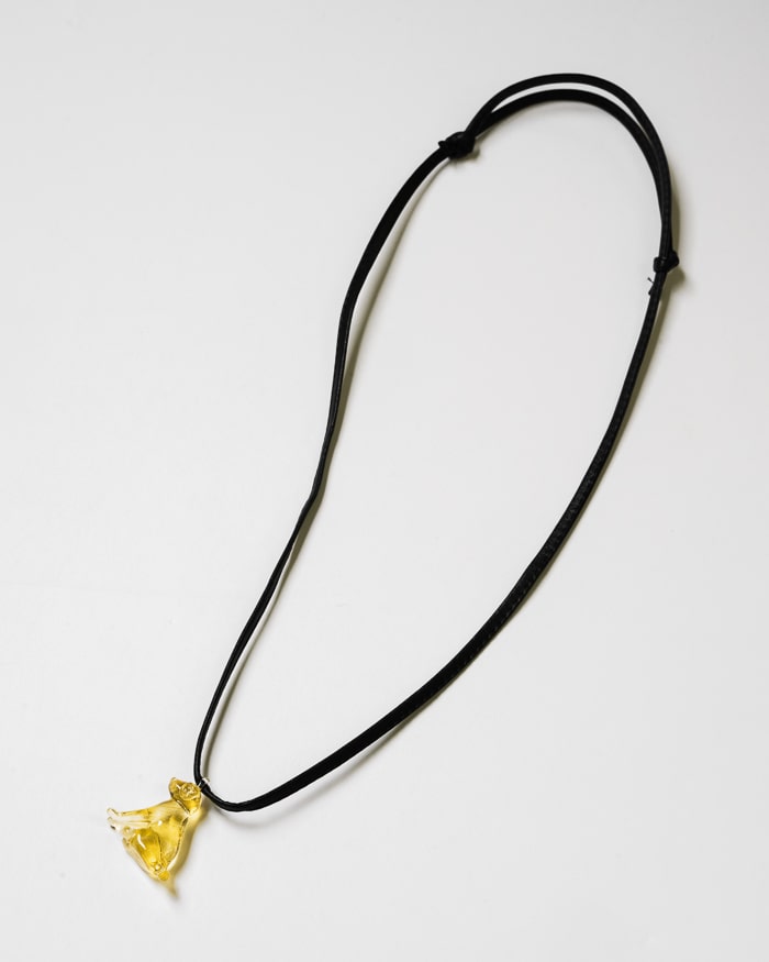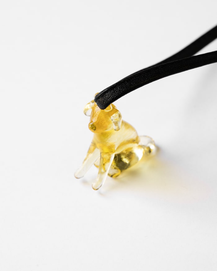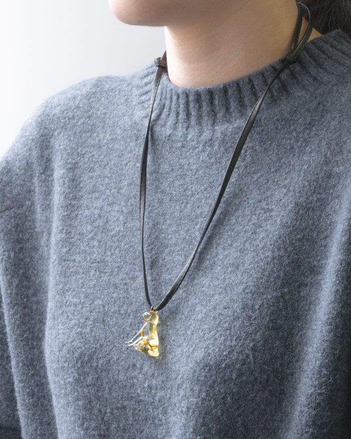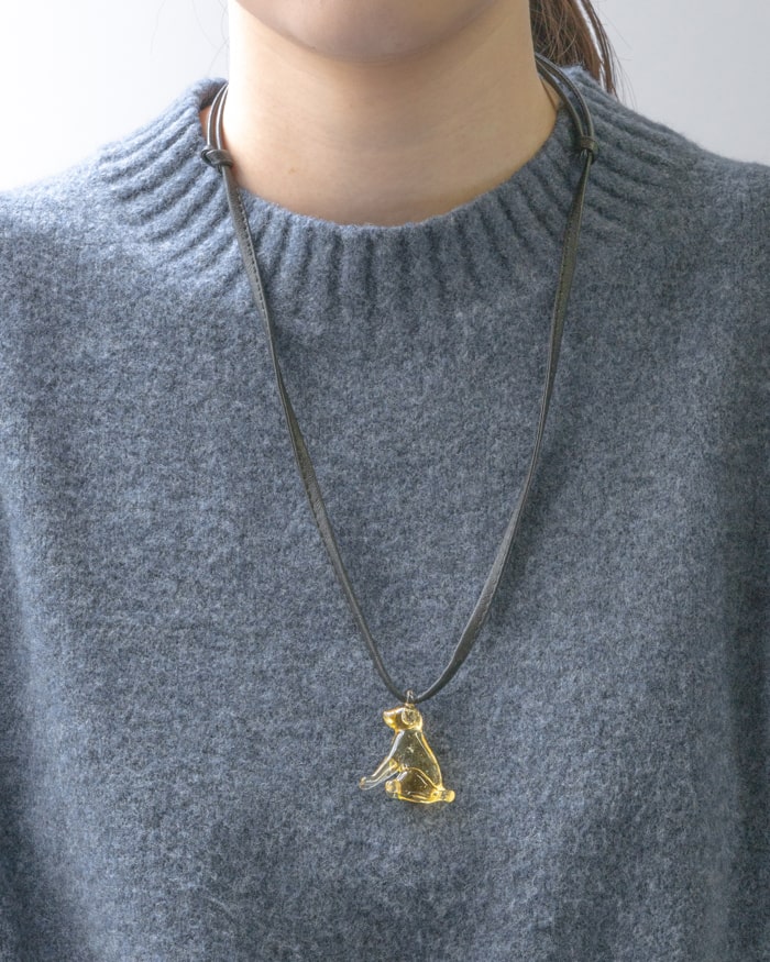 また、ガラスチャームのサイズは、金具チェーンを使ったネックレス ゴールデンレトリバー color GFに比べてひとまわり大きくなっており、より存在感をお楽しみいただくことができます。