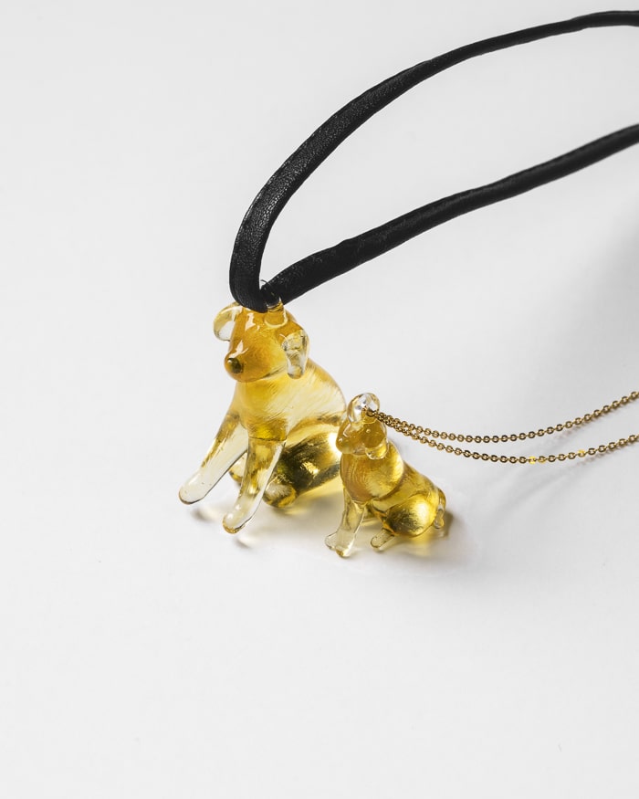 胸元で光るガラスのゴールデンレトリバーはいつもあなたのそ