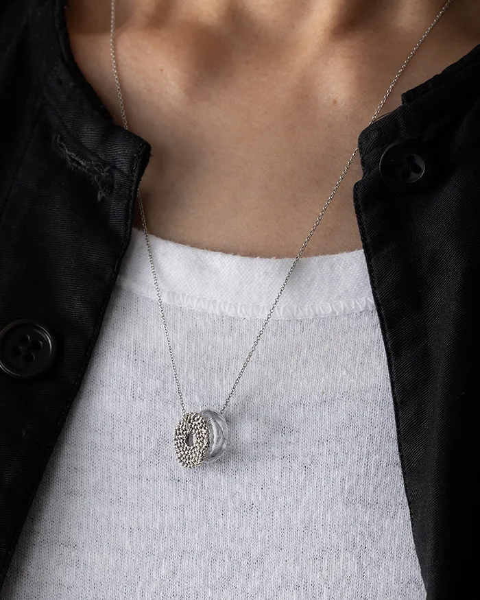 日々の思いや事象を、小さな銀の粒に見立てて重ねました。