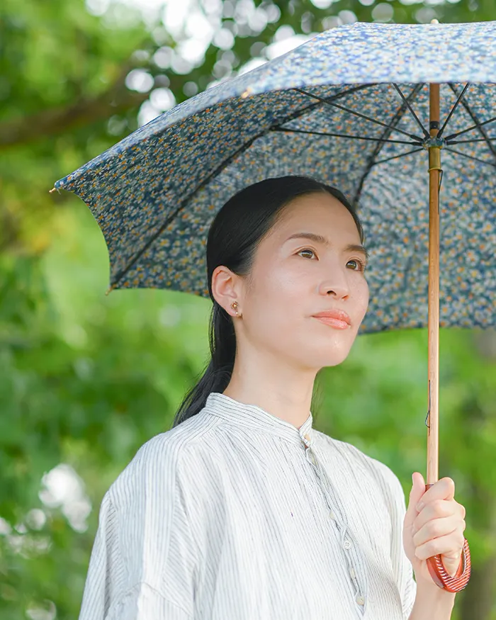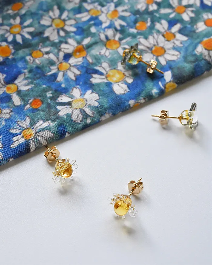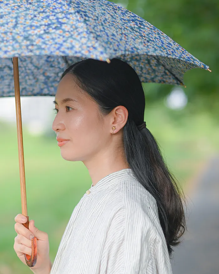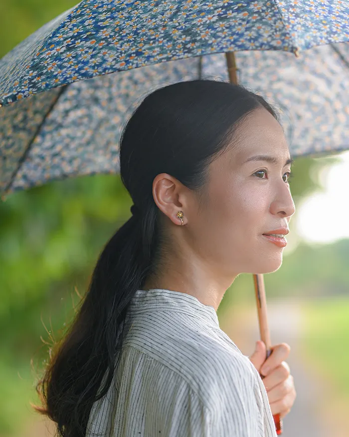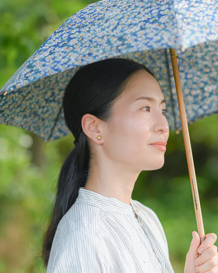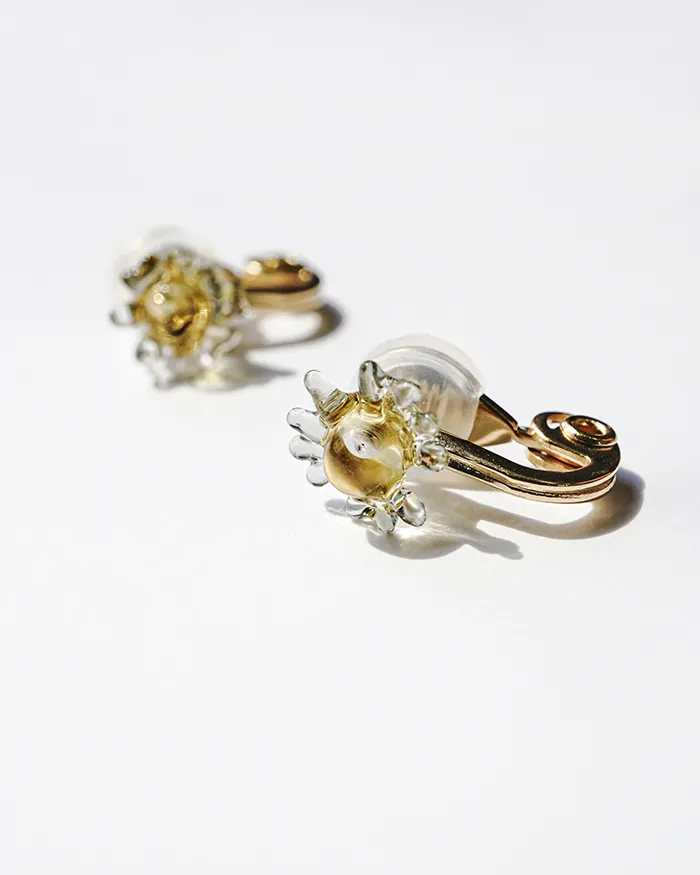 イイダ傘店の繊細で鮮やかなテキスタイルをガラスで表現した、生き生きと輝くガラスのアクセサリー。