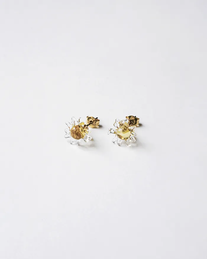 朝陽をうけて凛と輝く、クリアのガラスのカモミール。
