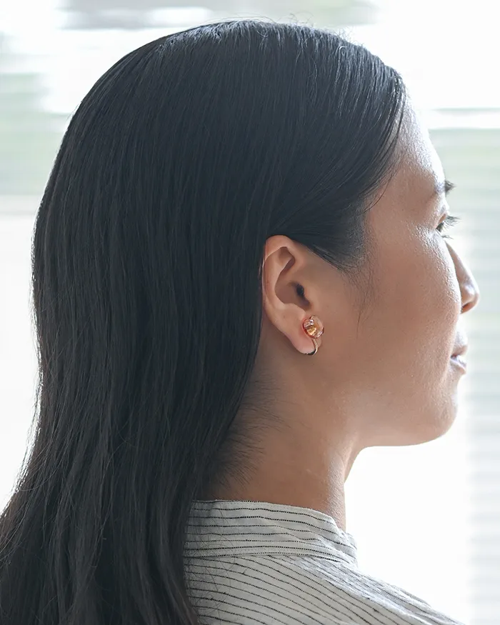 真っ赤な縁がワンポイントになり、ぴったりと耳によりそうガラスの「リンゴ」。