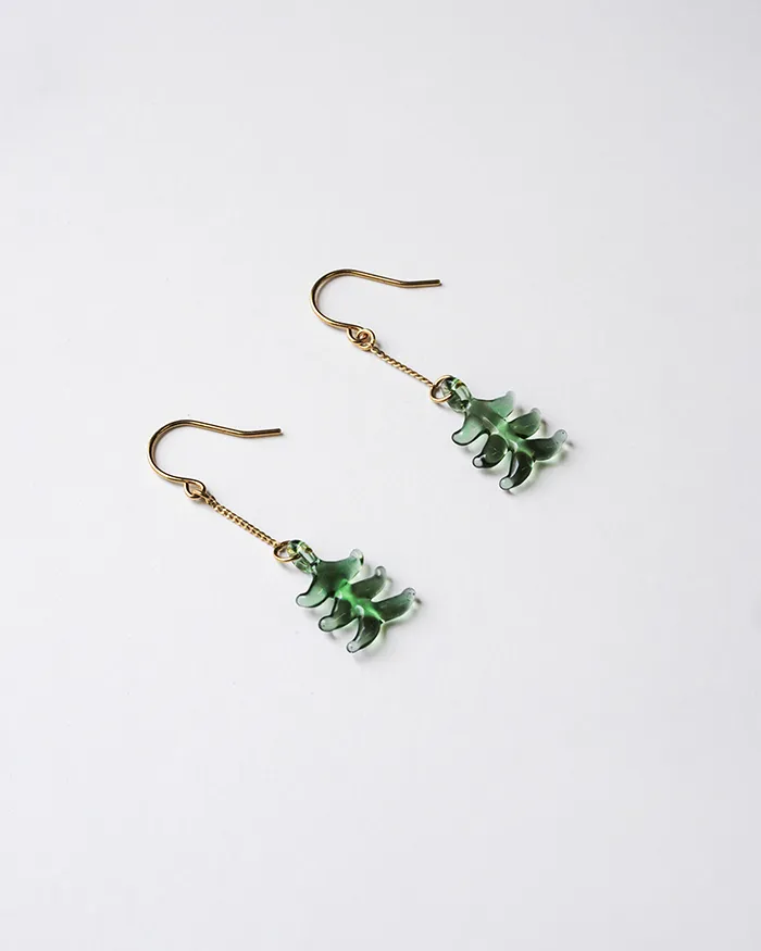 イイダ傘店の繊細で鮮やかなテキスタイルをガラスで表現した、生き生きと輝くガラスのアクセサリー。