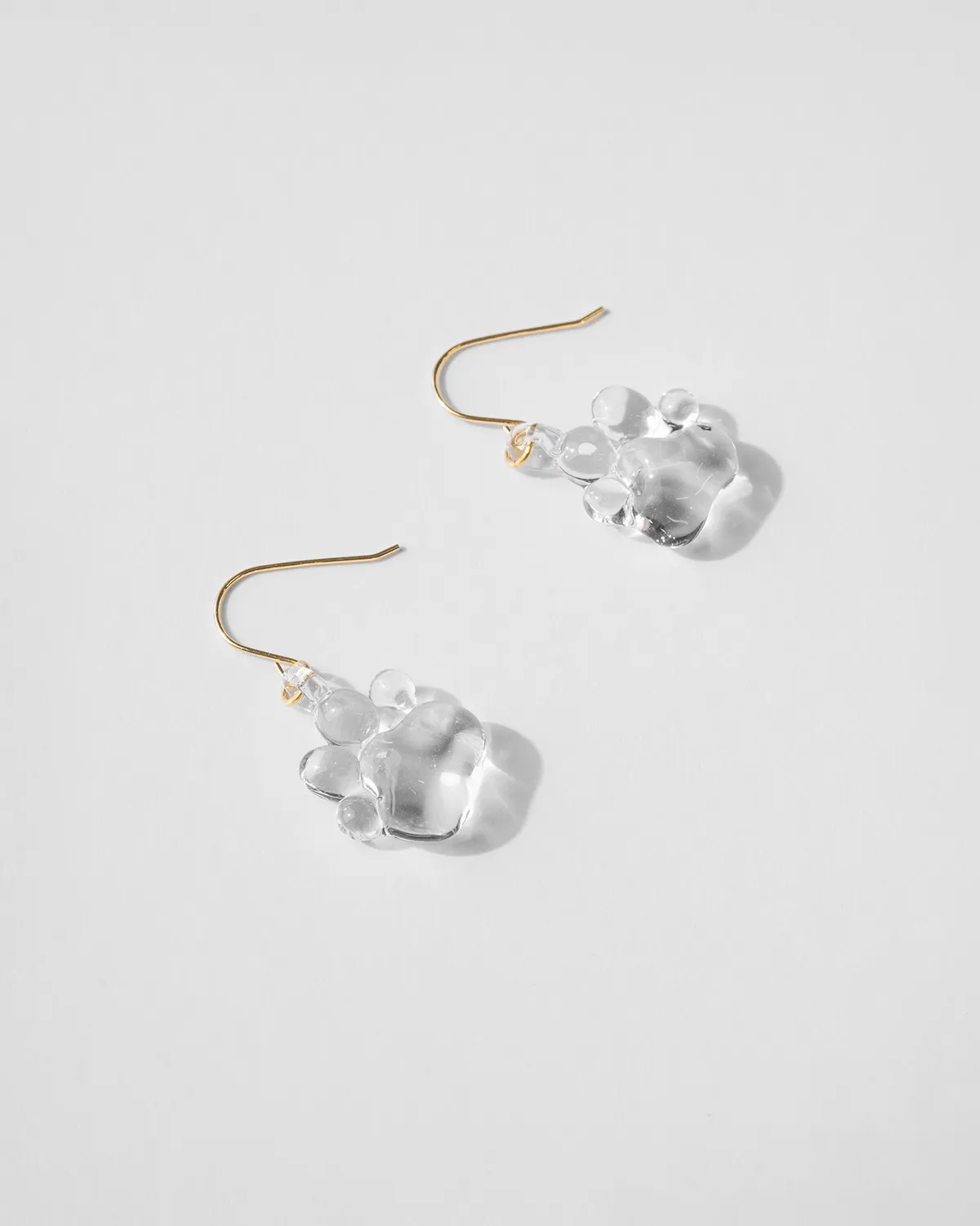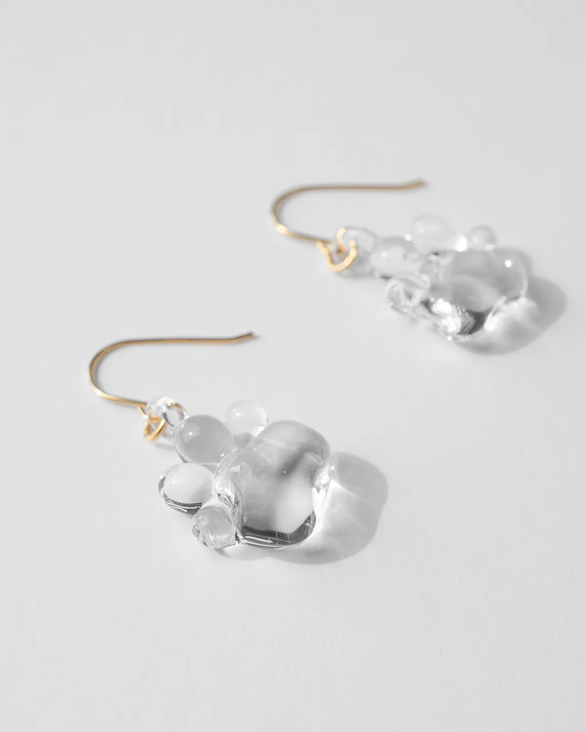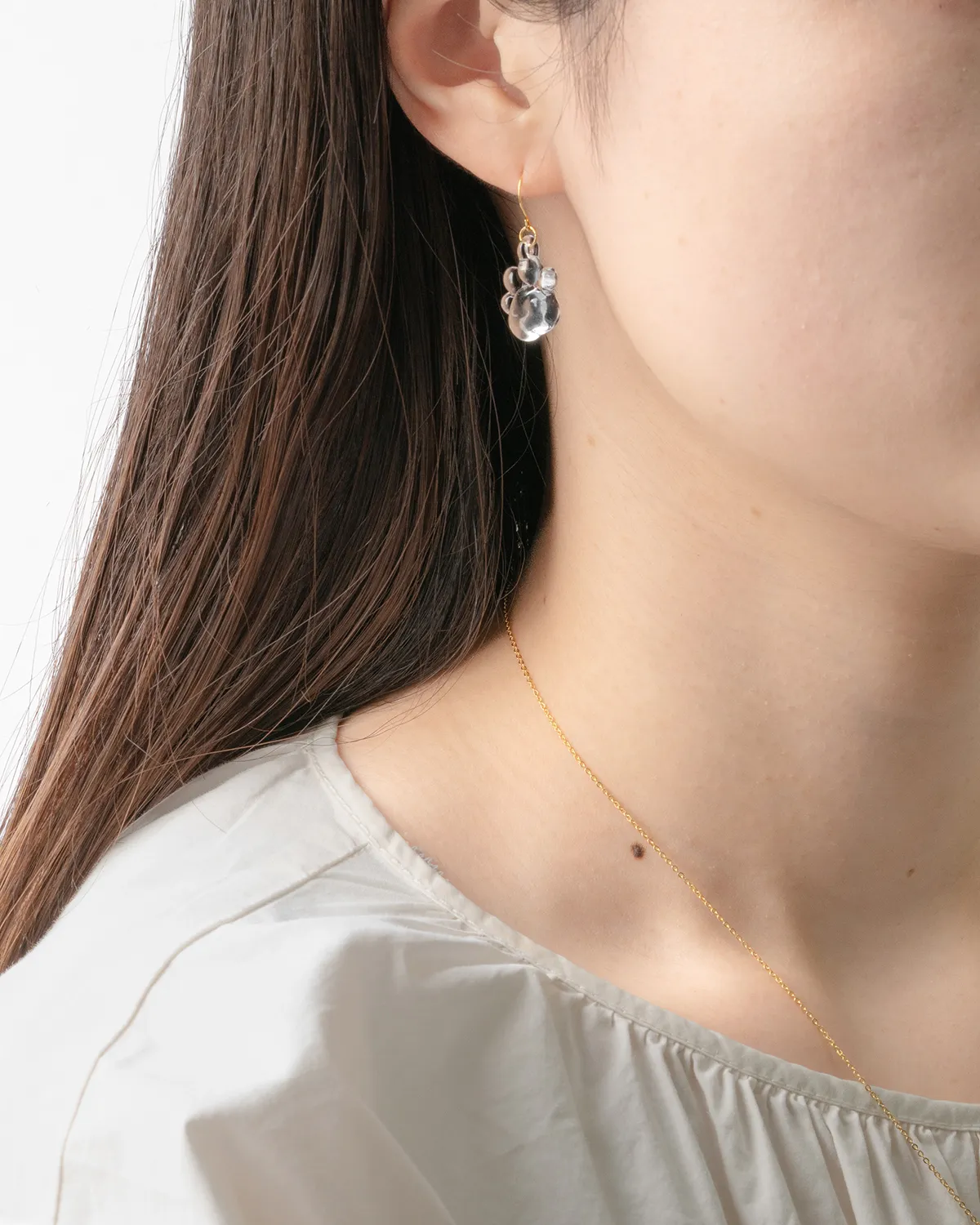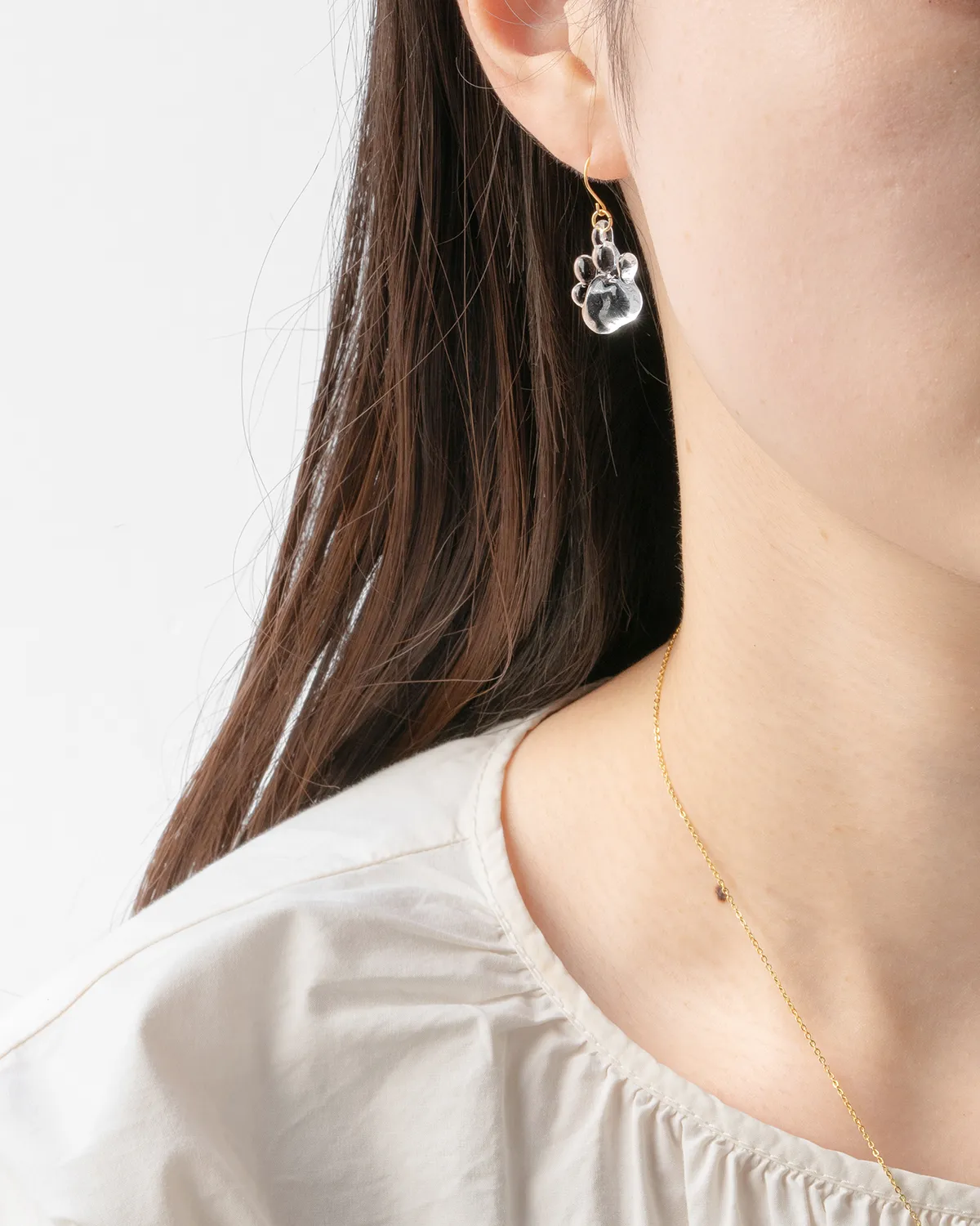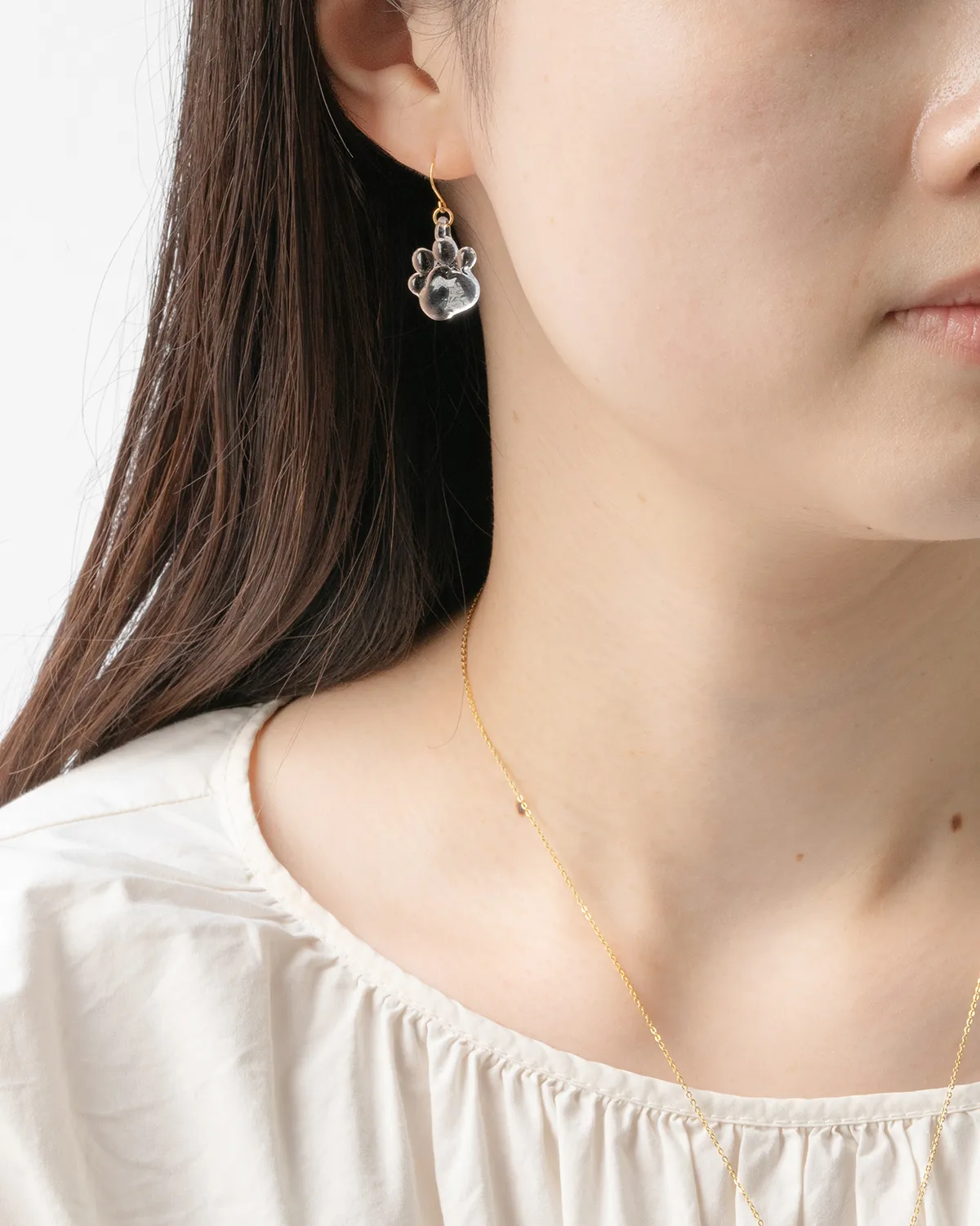 ぷにぷにの肉球のガラスアクセサリー。子犬のかわいらしい肉球が耳元できらきらと輝きます。
