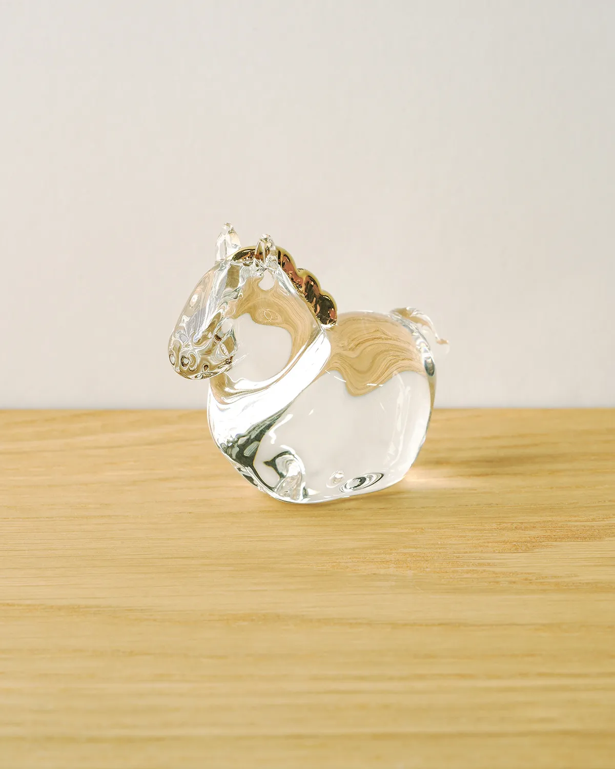 たっぷりとガラスを使い、透明感あふれるかわいらしい「ウマ」ができあがりました。たてがみにあしらった金彩の輝きが、上品で華やかなアクセントに。