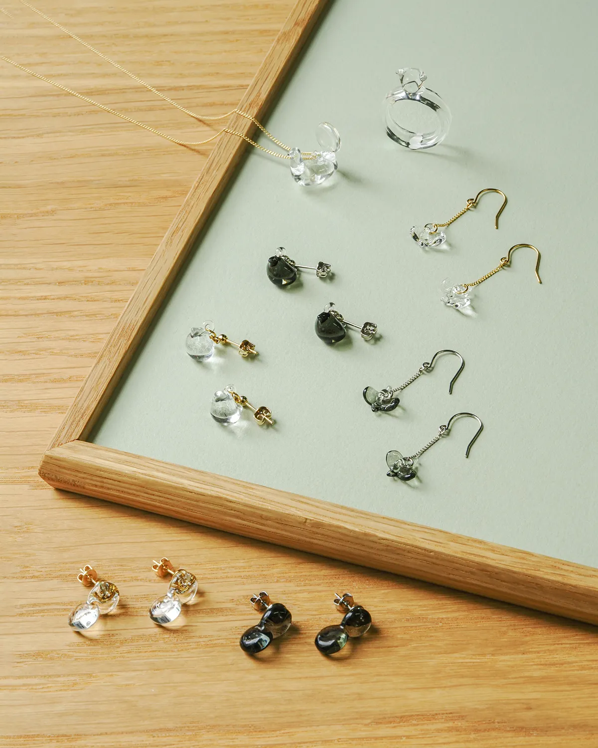 「BIRDS’ WORDS」とHARIO Lampwork Factoryでつくったガラスのアクセサリー。