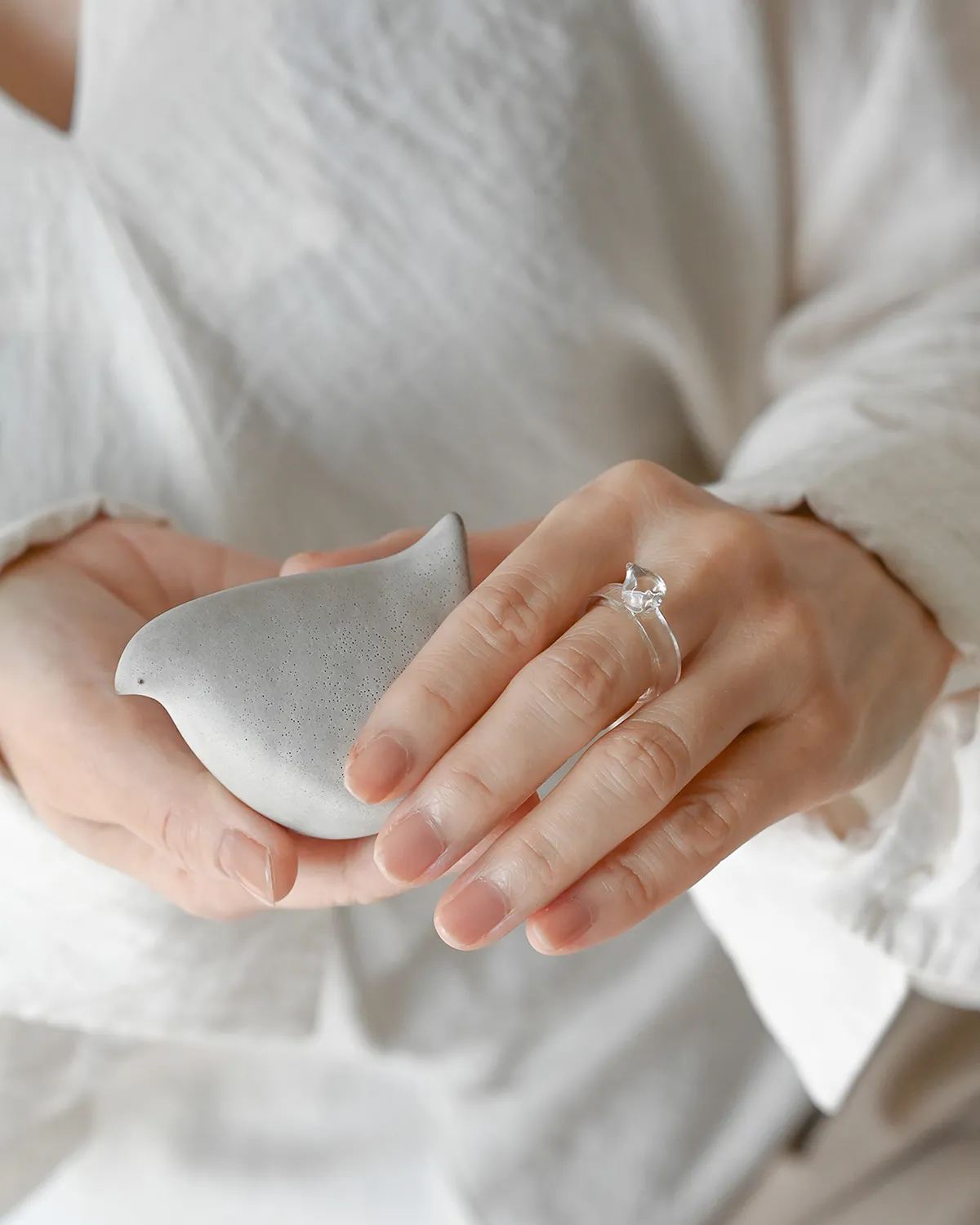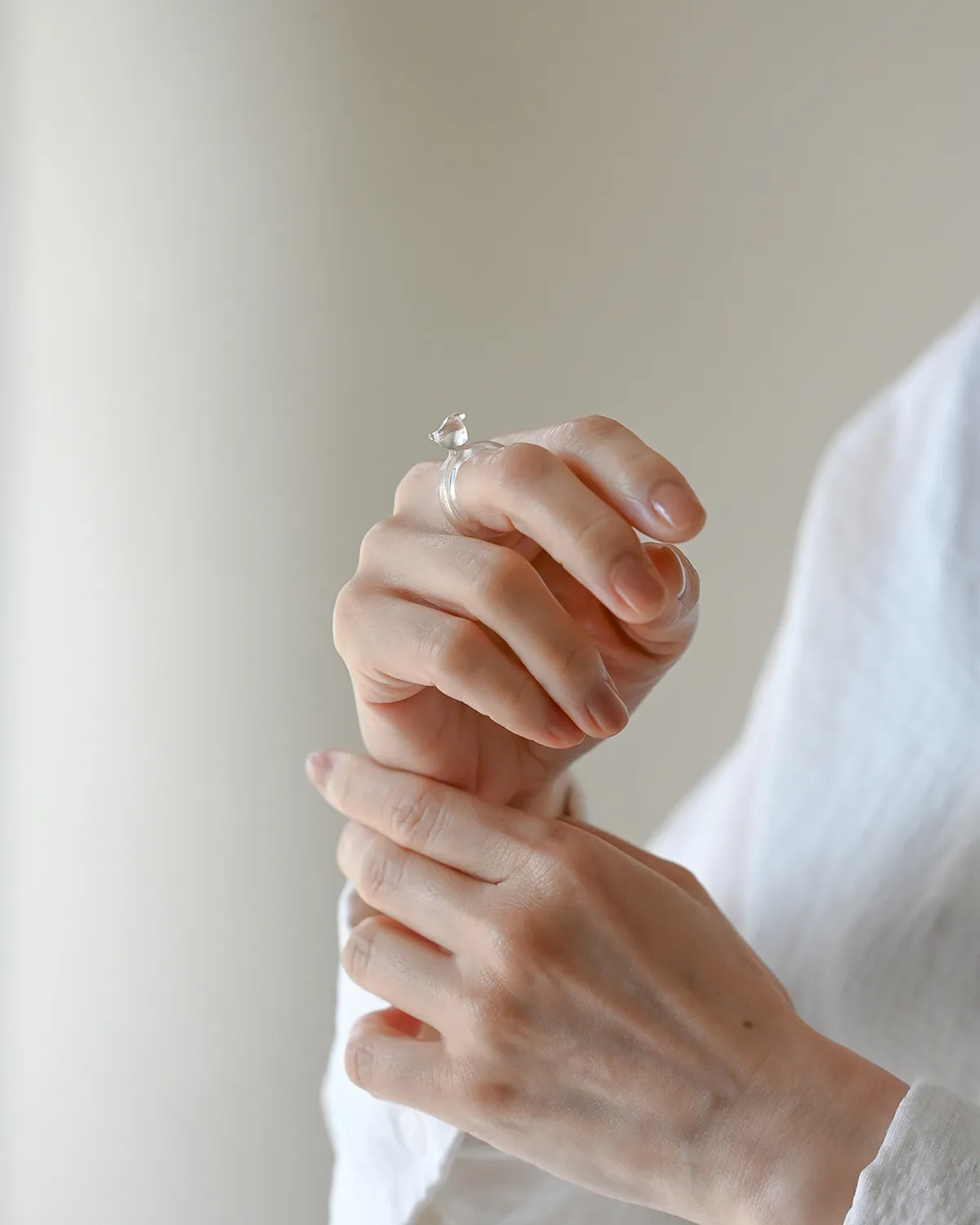 手元にちょこんと乗るように、愛らしい輝きを放つモチーフ。