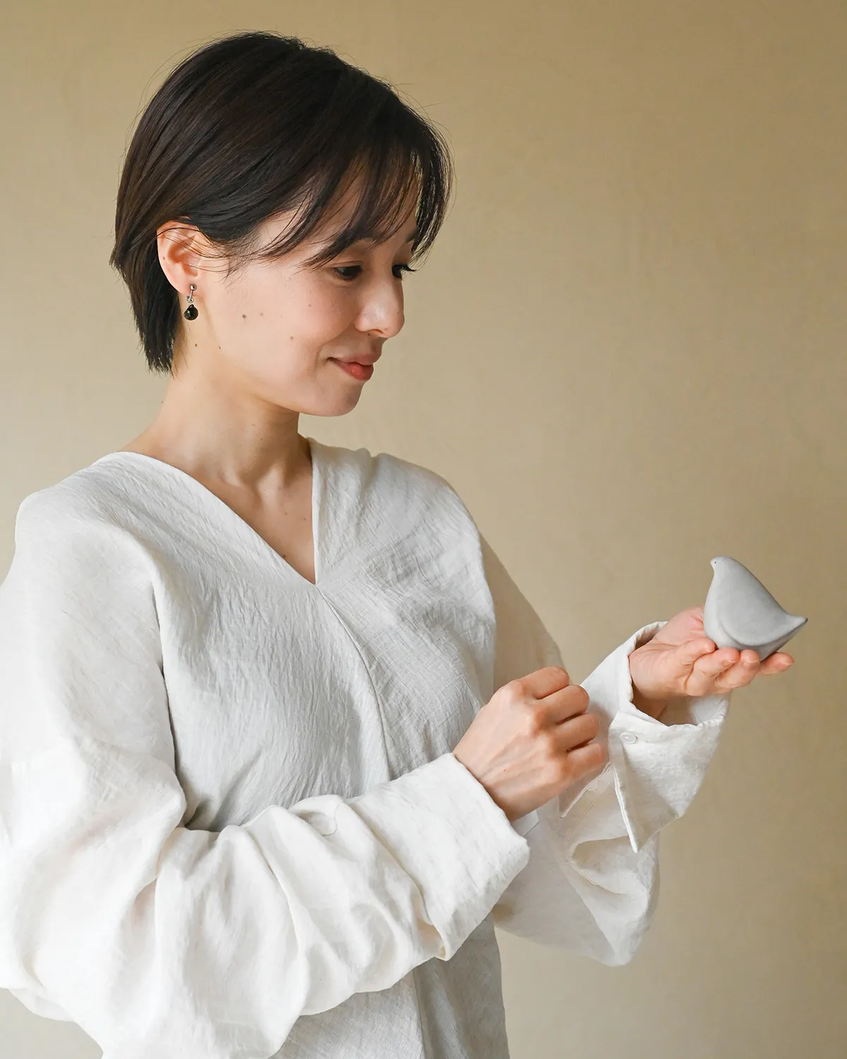 ふっくらころんとした小さな鳥が、ガラスのアクセサリーになりました。