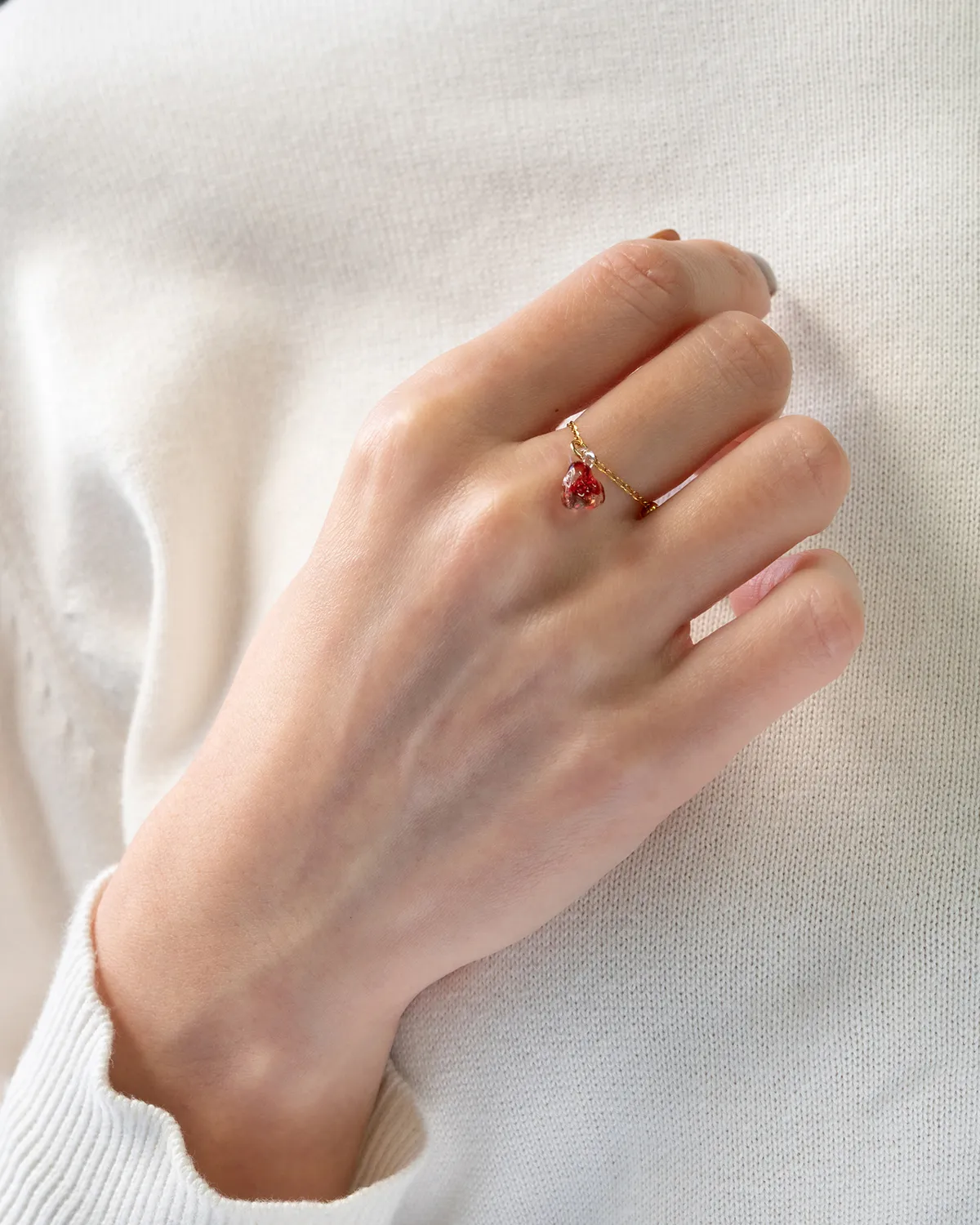 赤の色ガラスが重なり合い、深みのある上品な質感と華やかさを手元に添えてくれます。
