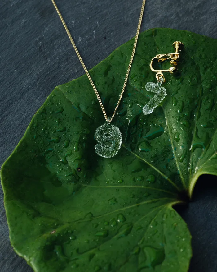 SOU・SOUのポップであたたかみのあるテキスタイルのデザインが、HARIOのガラス職人の手によって、繊細に輝くガラスのアクセサリーになりました。