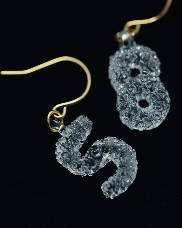 SOU・SOUのポップであたたかみのあるテキスタイルのデザインが、HARIOのガラス職人の手によって、繊細に輝くガラスのアクセサリーになりました。