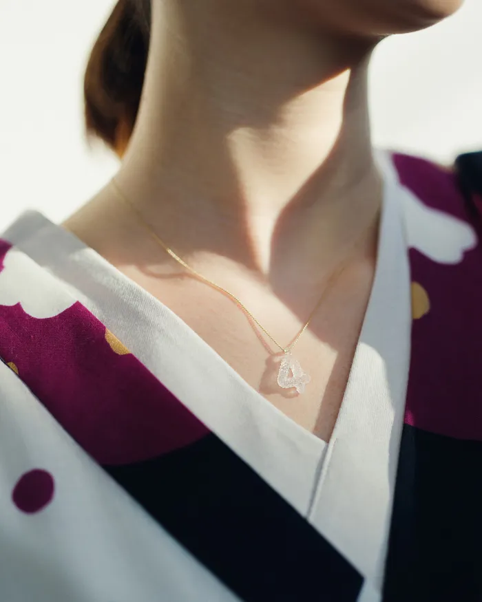 SOU・SOUのポップであたたかみのあるテキスタイルのデザインが、HARIOのガラス職人の手によって、繊細に輝くガラスのアクセサリーになりました。